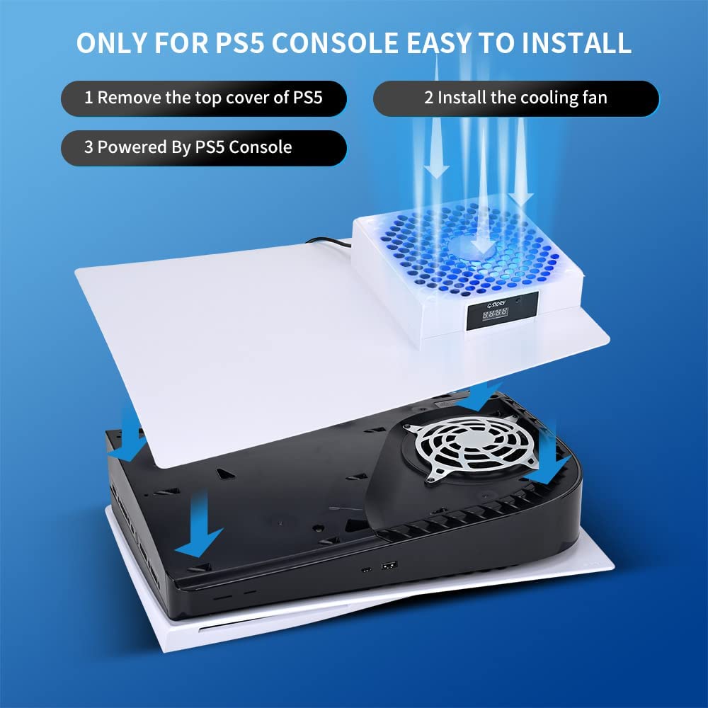 - ๐High Quality&Easy to Install: The fan is made of the same material(same high quality) as the PS5 console's original cover. Install:1. Remove the top cover of your ps5 console; 2. Fix the cooling fan on your console; 3. Connect the cable to the console. We offer 40 days free of exchange for G-STORY PS5 Cooling Fan.